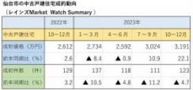 2023年の10~12月度の仙台市の中古住宅の平均成約価格は、3,191万円で前年比プラス22.1%の大幅上昇となり、2期連続でに前年同期比を上回りました。